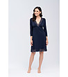 Нощница в тъмносиньо Thelma V-образно деколте с дантелени кантове Дълги ръкави Свободна линия |