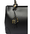 Черна кожена дамска чанта Две фиксирани дръжки с метални елементи 28 см |